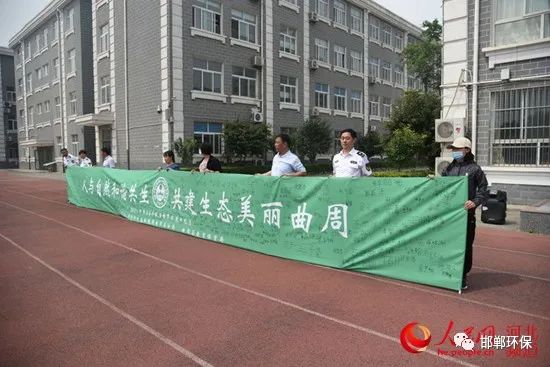 6月1日上午,邯郸市生态环境局曲周县分局、曲周县教育体育局在小河道小学开展庆祝六一国际儿童节、迎接六五世界环境日“人与自然和谐共生”环保主题签名活动。