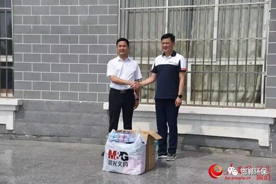 签名仪式上,蒿文岭还代表生态环境分局向小河道小学赠送了文具包、环保口罩、环保手提袋等节日礼物,并祝同学们节日快乐。