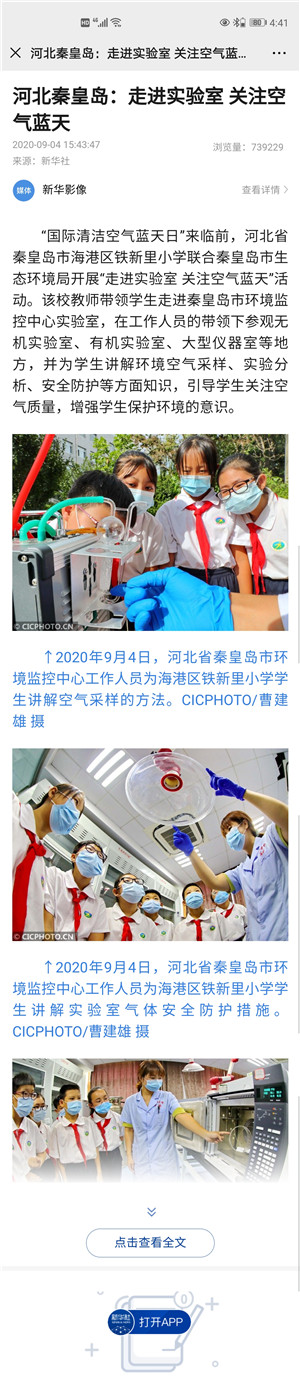 9月5日 河北日报客户端 铁新里小学、市生态环境局:走进实验室 关注空气蓝天