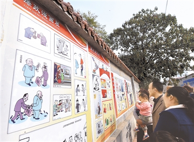 隆尧县官庄村干部群众在观看廉政漫画。(本报资料图片) 记者 赵永辉 赵威摄