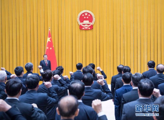 国务院举行宪法宣誓仪式 李克强总理监誓