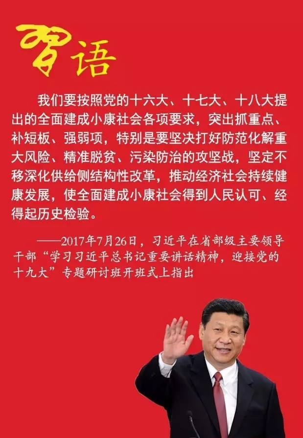 习近平总书记在省部级主要领导干部专题研讨班上提出,我们要按照党的十六大、十七大、十八大提出的全面建成小康社会各项要求,突出抓重点、补短板、强弱项,特别是要坚决打好防范化解重大风险、精准脱贫、污染防治的攻坚战。那么,如何把这三场攻坚战打好,看看习近平给出的战略锦囊。