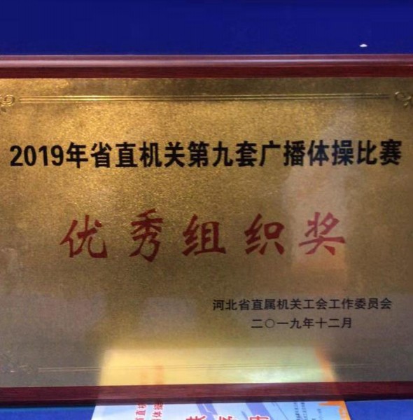 12月18日,省委省直工委在河北体育馆举办了“2019年省直机关第九套广播体操比赛”,省直各厅局、企事业单位43个代表队1000多名干部职工参加了比赛。经过激烈角逐,我厅荣获二等奖和优秀组织奖。