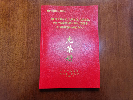 杏彩(中国)官方网站 荣获“河北省文明单位”称号