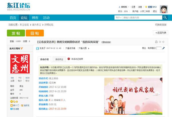 惠州文明网通过论坛开展“话说我的家风家规”主题传播活动。图片来源:惠州文明网