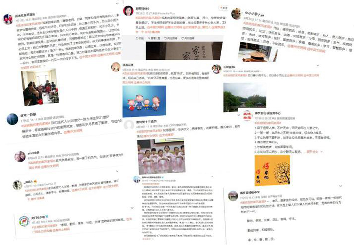 国有国法,家有家规。日前,惠州文明网联合今日惠州网开展“话说我的家风家规”主题传播活动,得到50多万人次关注,数千网友通过微博、微信、论坛等网络平台,以发表图片、文字等方式,讲述自己或身边人的家教故事,阐述对家风家训的理解和感悟,抒发对家人的爱。