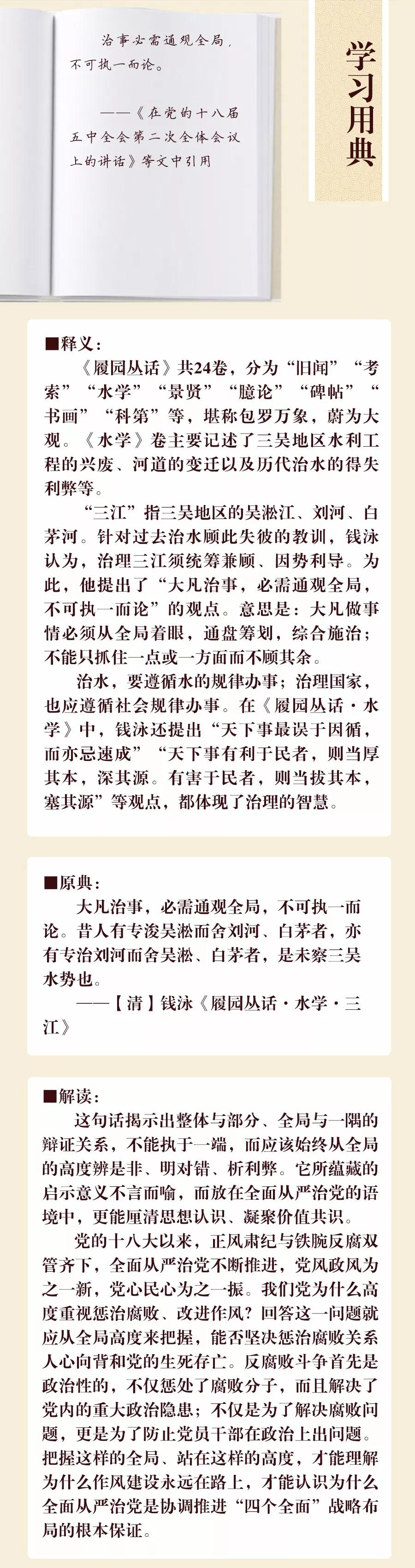 【学习用典】治事必需通观全局,不可执一而论