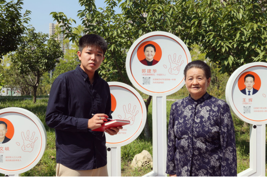郭建华在开封好人主题公园接受采访。图片来源:开封市文明办