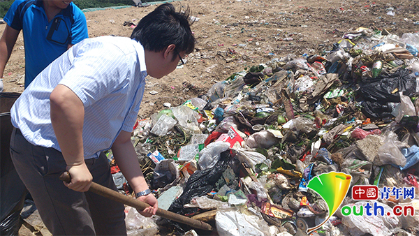 张旋洲在垃圾填埋场现场采集样品。受访者供图