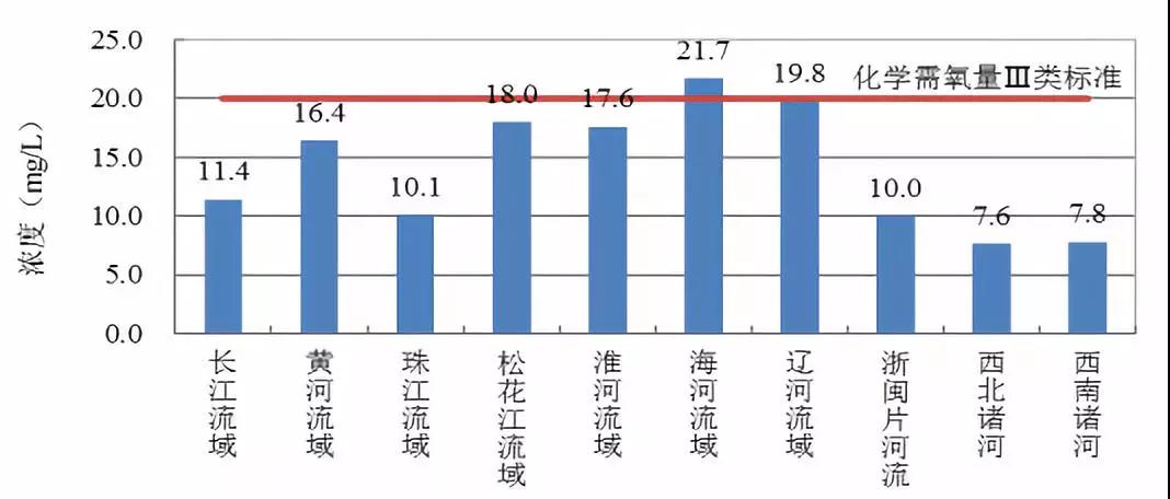 图3 2018年上半年十大流域化学需氧量平均浓度