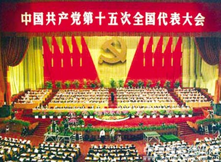中共十五大会场。(资料图片)