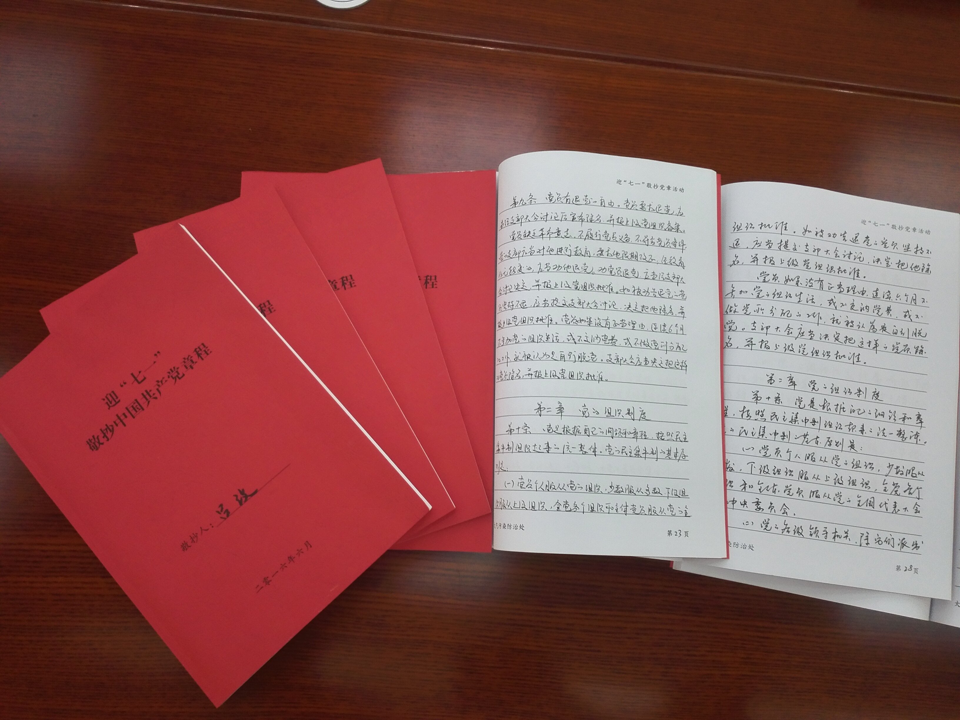 在“两学一做”学习教育中,厅全体党员积极参与“敬抄党章·‘七一’献礼”活动。在抄写