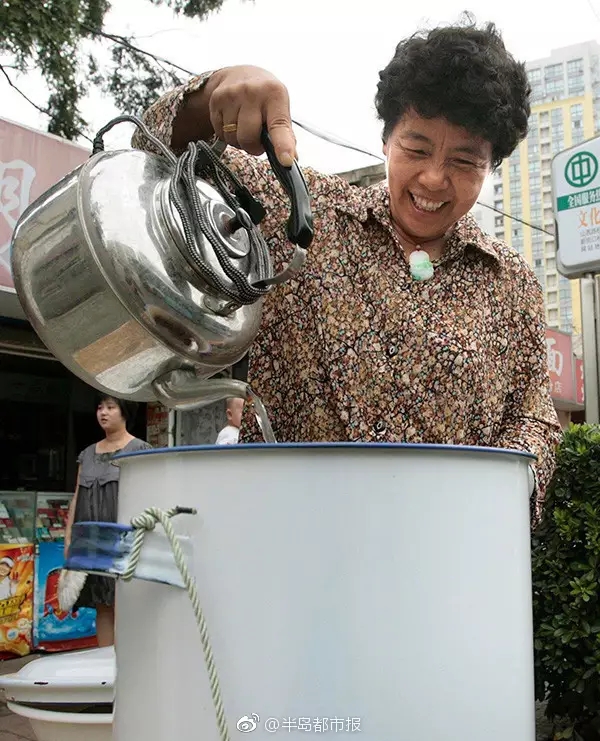 她为路人提供免费茶水