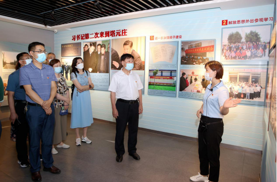 讲解员的带领下党员干部参观了文化长廊和村史馆,观看了《蝶变塔元庄》纪录片,深刻了解塔元庄村在习近平总书记的殷切期盼下,在村“两委”团结奋进、真抓实干下,以习近平总书记提出的“农业做成产业化、养老做成市场化、旅游做成规范化”为目标,积极探索新时代农村发展的新路径,农业产业发展迅猛,农村面貌欣欣向荣,农民生活富裕美满,成为乡村振兴的典范。