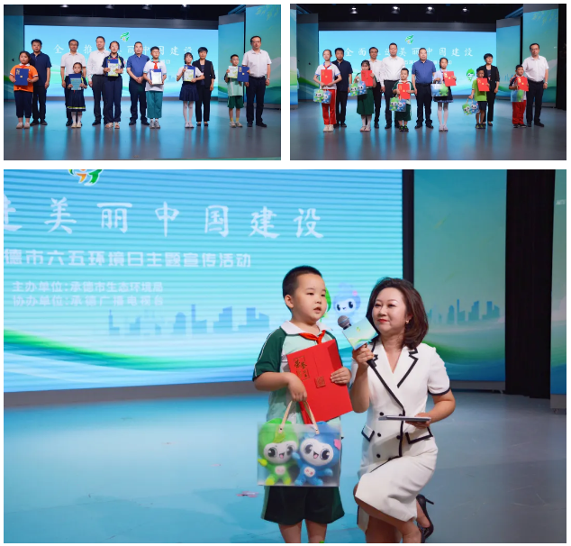 出席嘉宾分别为2024年“美丽中国,我是行动者”环保小记者主题征文获奖代表、青少年自然生态笔记征集活动获奖代表和优秀指导教师颁奖。活动现场,由承德市高新区和润实验小学的学生们带来童声合唱六五环境日主题曲《让中国更美丽》,承德市演艺集团演绎精彩歌伴舞《美丽的塞罕坝》。