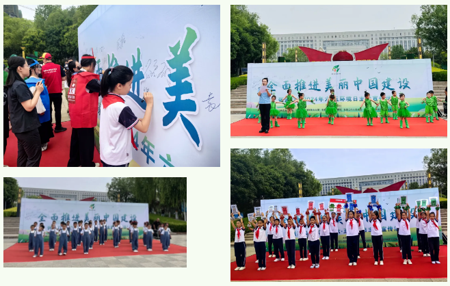 全市生态环境系统联动相关部门积极开展了主题宣传活动。多所小学开展了“庆六一、迎六五”环保主题文艺汇演和废旧物品手工艺展示宣传活动。《让中国更美丽》环保主题歌曲传唱活动持续开展。市生态环境局制作了生态环境政策百问百答专题图解、六五环境日倡议书H5、六五主题宣传海报等,通过微信公众号、微博等新媒体平台进行发布。组织“绿色学校”师生到市环境监测站、主城区污水处理厂开展环保设施公众开放活动。