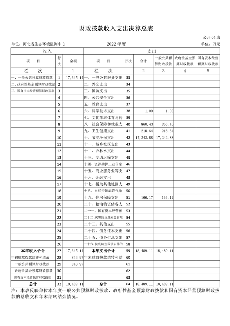 河北省生态环境监测中心2022年度单位决算公开文本
