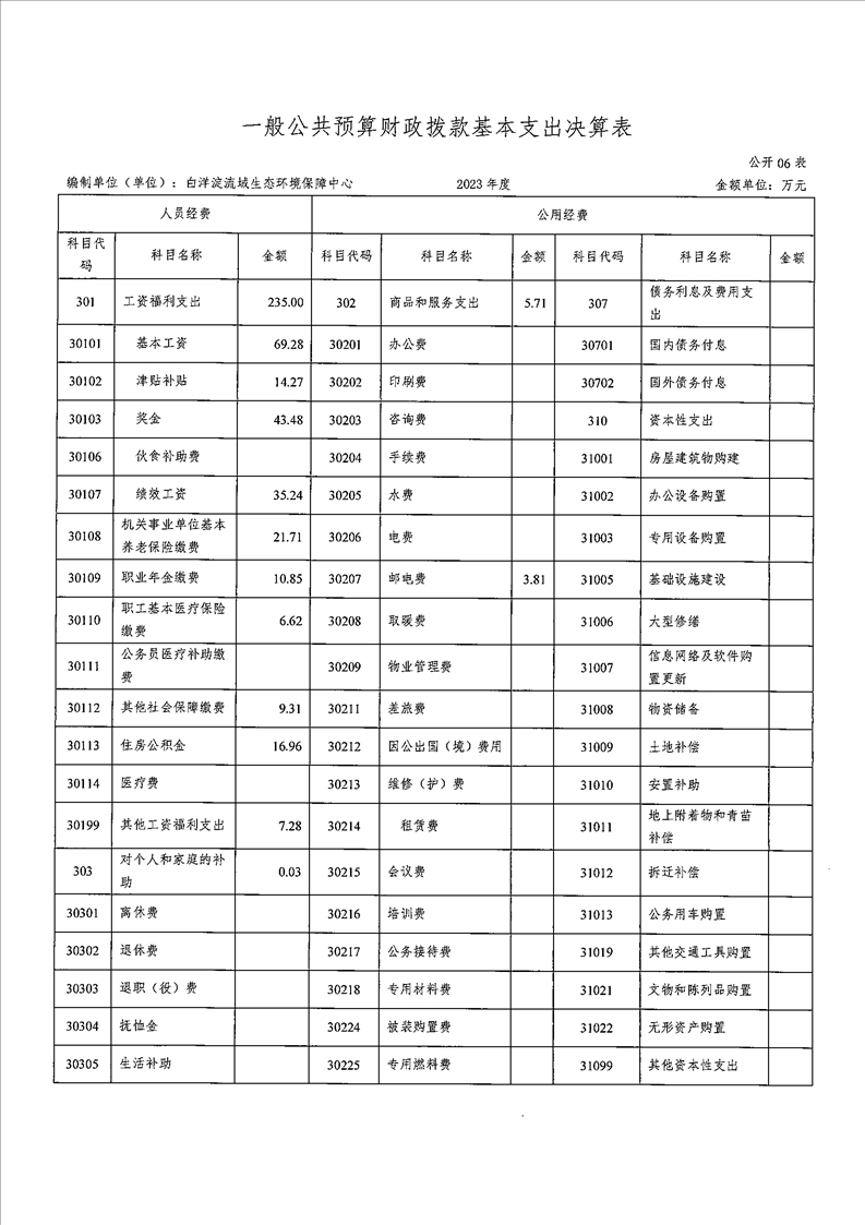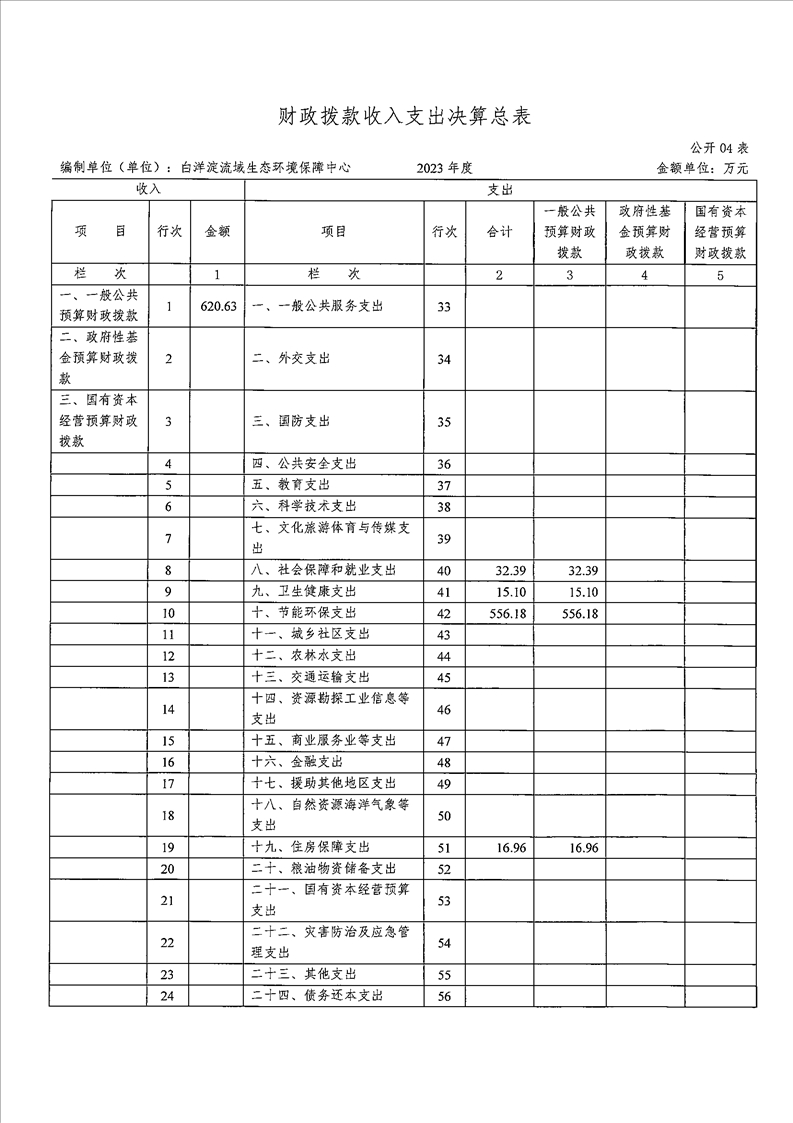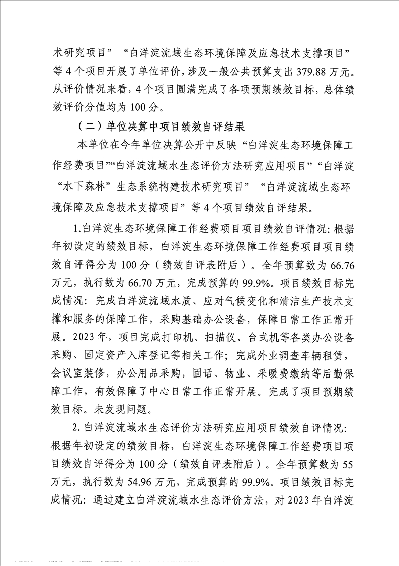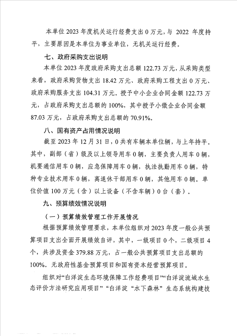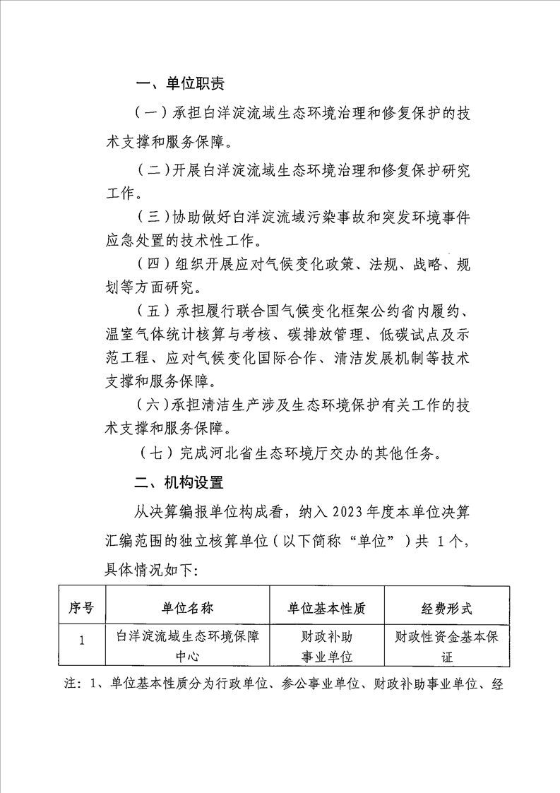 467037白洋淀流域生态环境保障中心2023年度单位决算公开文本