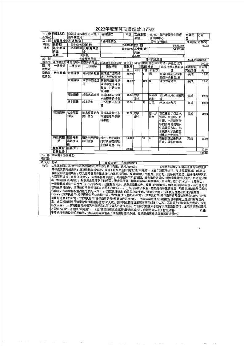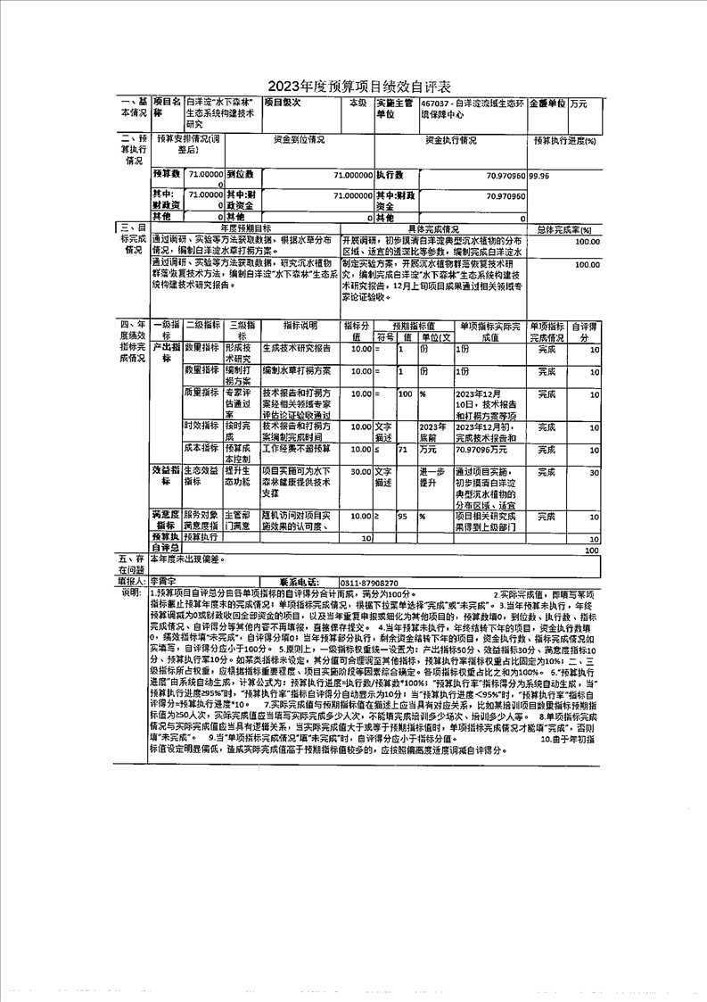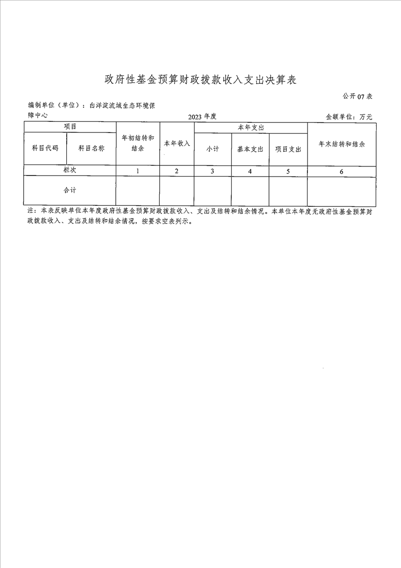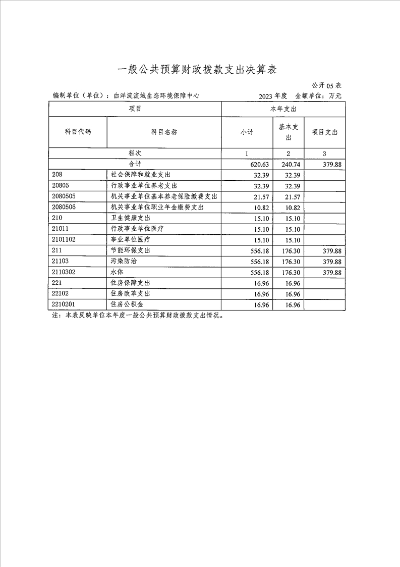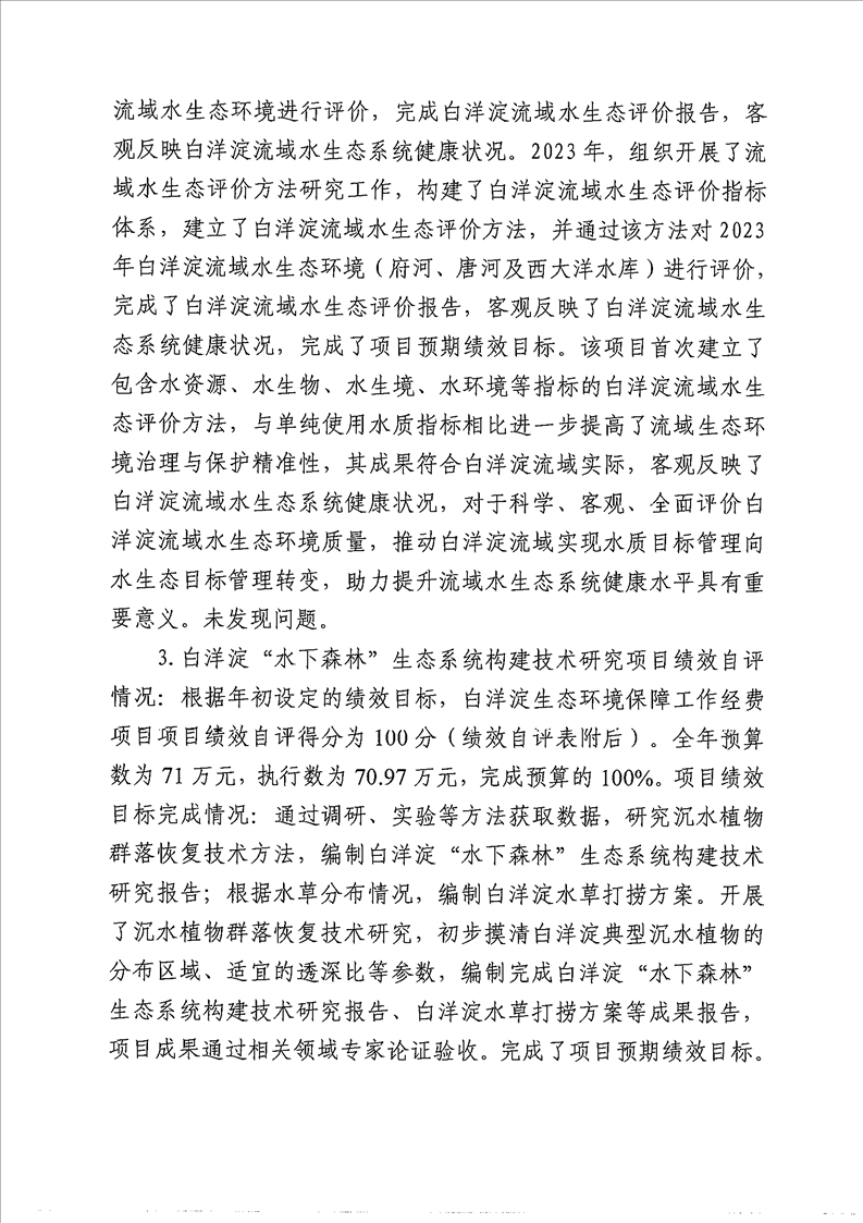 467037白洋淀流域生态环境保障中心2023年度单位决算公开文本