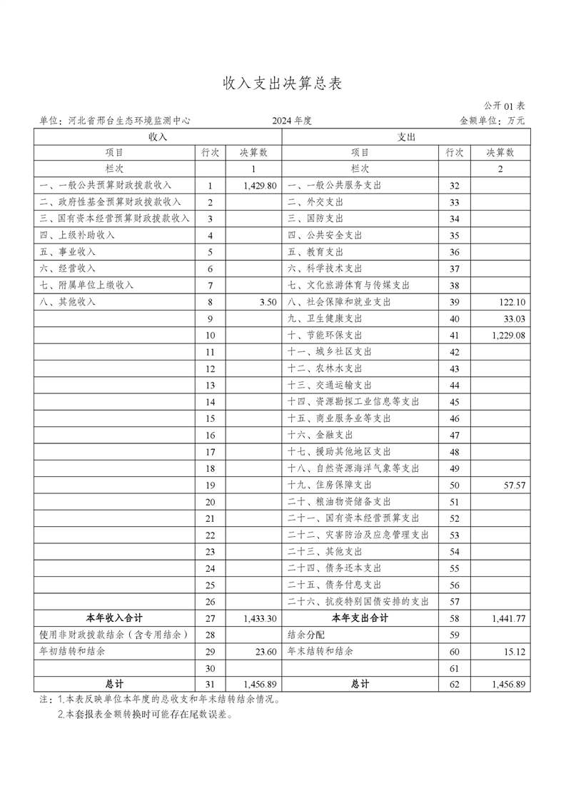 467034河北省邢台生态环境监测中心2024年度单位决算公开文本
