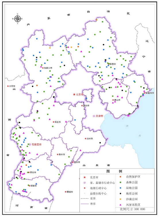 根据河北省地形地貌及生物多样性分布特点,重点区域包括两区(坝上高原区、滨海区)、两山(太行山、燕山)、两湖(白洋淀、衡水湖)。