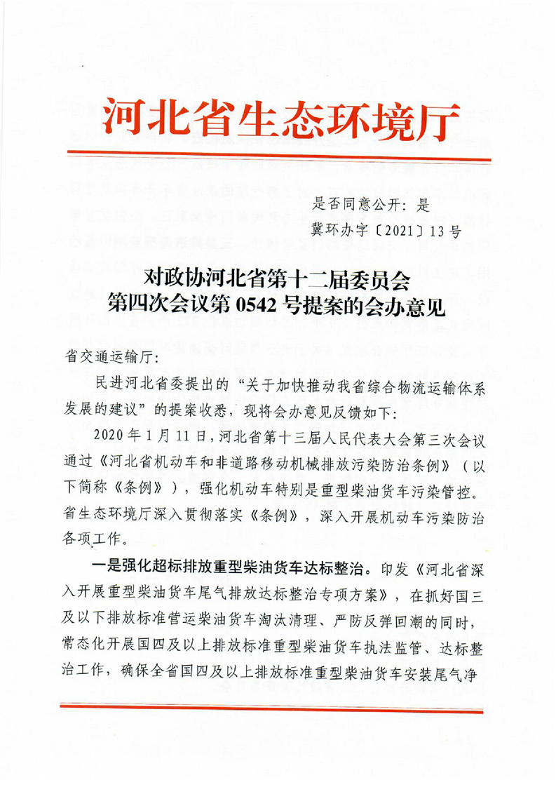 对政协河北省第十二届委员会第四次会议第0542号提案的会办意见