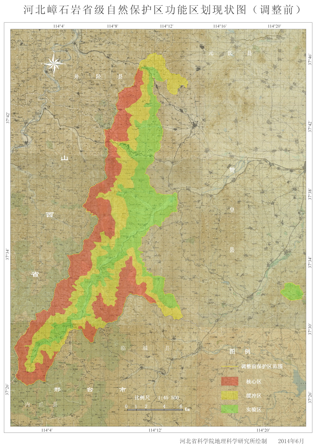 调整前后的河北嶂石岩省级自然保护区功能区划图