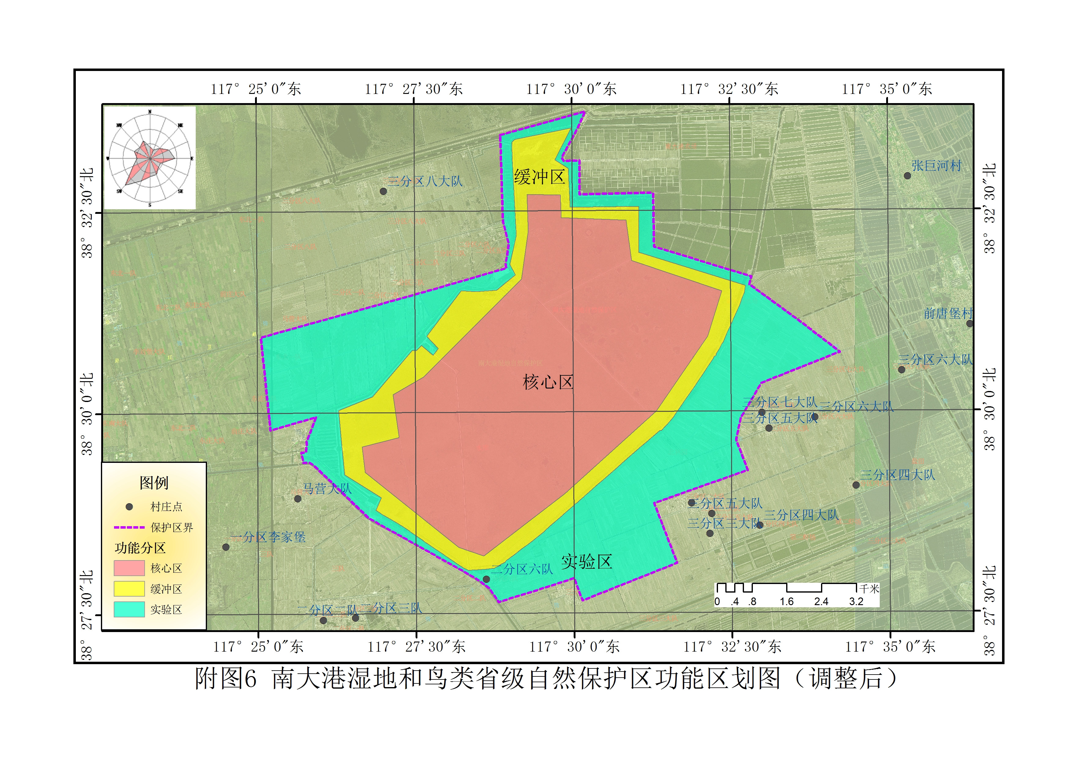 调整前后的河北南大港湿地和鸟类省级自然保护区功能区划图