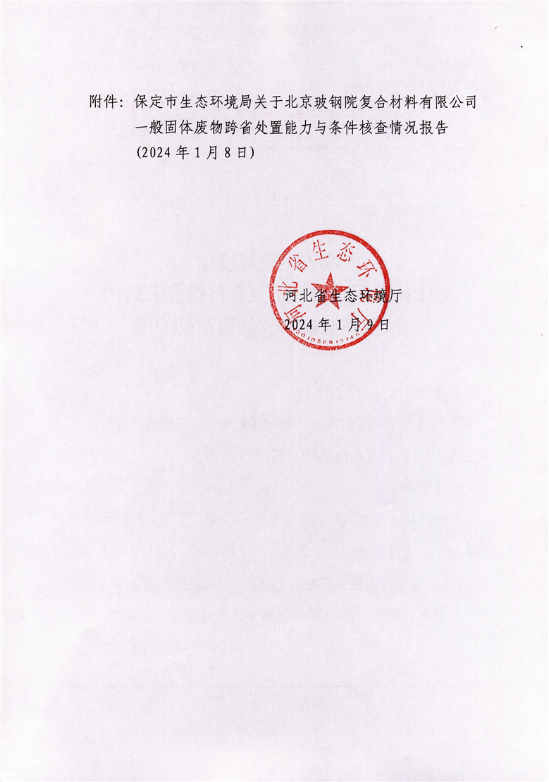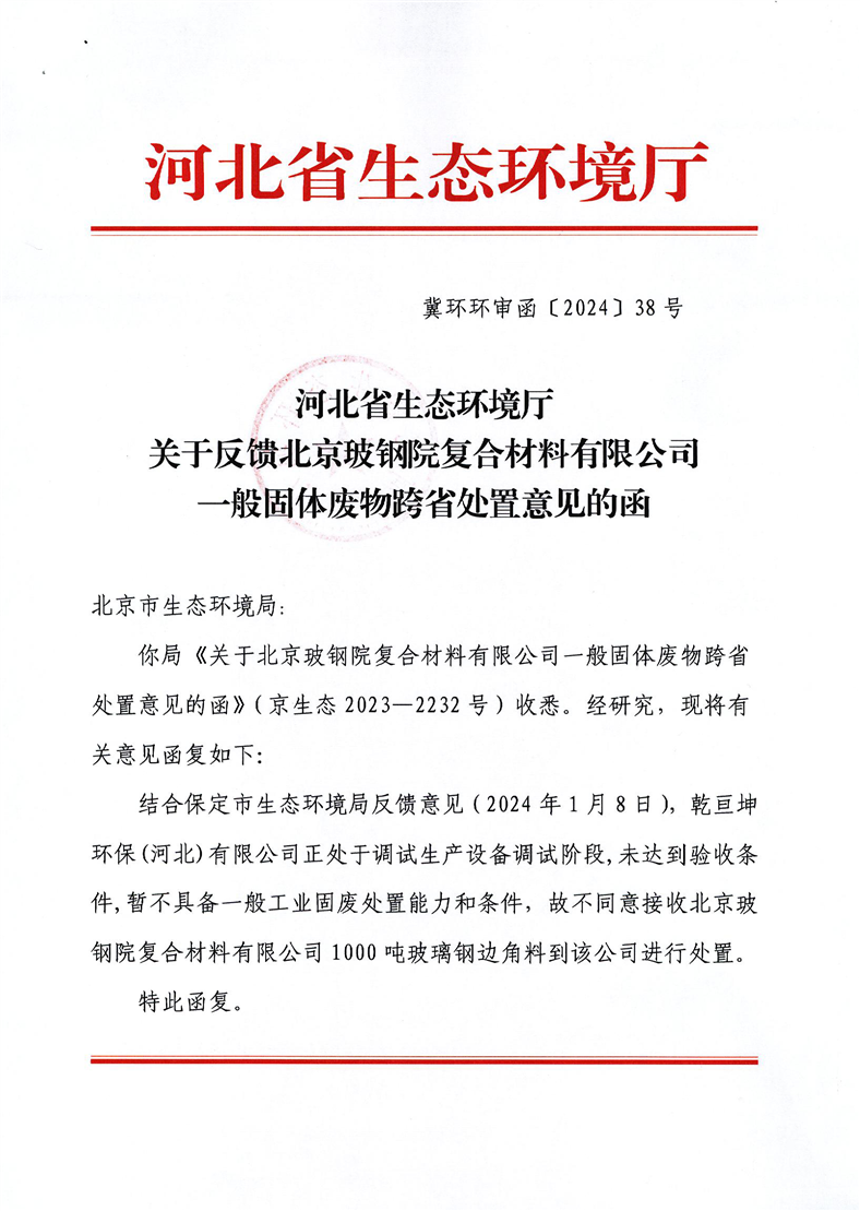 关于反馈北京玻钢院复合材料有限公司一般固体废物跨省处置意见的函