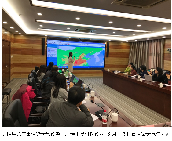 1130日上午,河北省环保厅在环境应急与重污染天气预警中心召开了121-4日重污染天气应对解读会。参会的有河北省环境应急与重污染天气预警中心王晓利主任、河北科技大学环境科学与工程学院大气中心主任郭斌教授、河北省气象局环境气象中心赵玉广正高级工程师等专家。新华社、中国日报、中新社、河北日报、长城网等十余家新闻媒体参加了本次解读会。