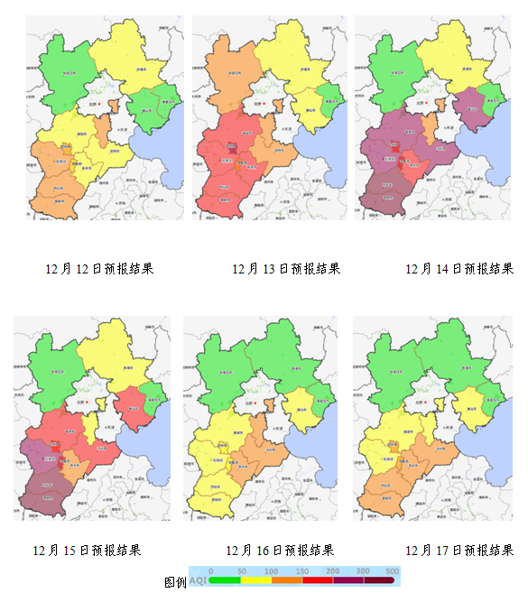 本周全省空气质量预报(2017年12月11日~12月17日) 来源:省生态环境应急与重污染天气预警中心 时间:2017-12-11