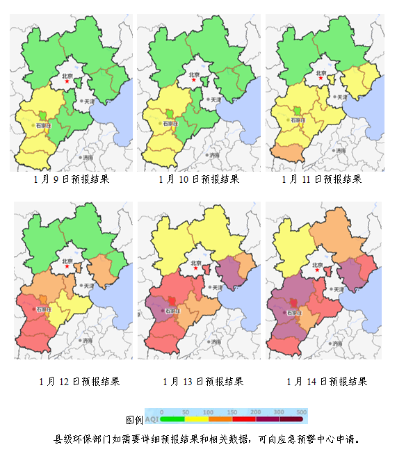 13~14日,扩散条件持续不利,污染物堆积,我省北部以良至轻度污染为主,中南部以中至重度污染为主,首要污染物为PM2.5。