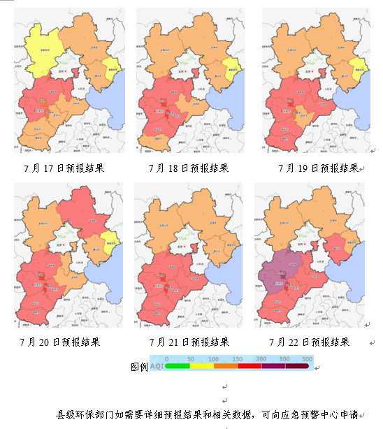 本周全省空气质量预报(2018年7月16日~7月22日) 来源:省生态环境应急与重污染天气预警中心 时间:2018-07-16