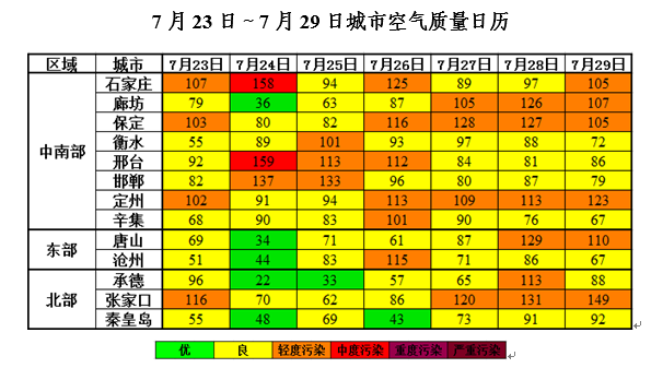 上周(2018年7月23日~29日),全省空气质量以良至轻度污染为主,首要污染物为O3。24日,石家庄,邢台各出现1天臭氧中度污染。