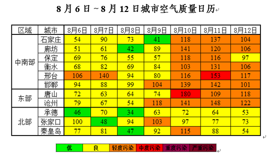 上周(201886日~812日),我省北部空气质量以优良为主,中南部以良至轻度污染为主,首要污染物为O3。邢台、唐山分别出现1天臭氧中度污染。