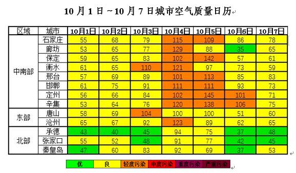 上周(2018年10月1日~10月7日),国庆假日期间,我省受前后两股冷空气影响,扩散条件总体较好,全省空气质量以优良为主,其中4~5日,受静稳天气影响,扩散条件一般,北部和东部空气质量以良为主,中南部地区空气质量以轻度污染为主。
