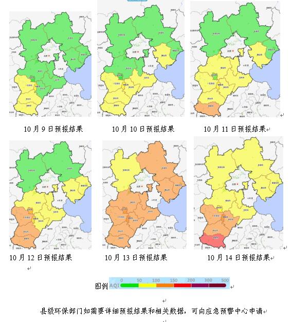 本周全省空气质量预报(2018年10月8日~10月14日) 来源:省生态环境应急与重污染天气预警中心 时间:2018-10-08