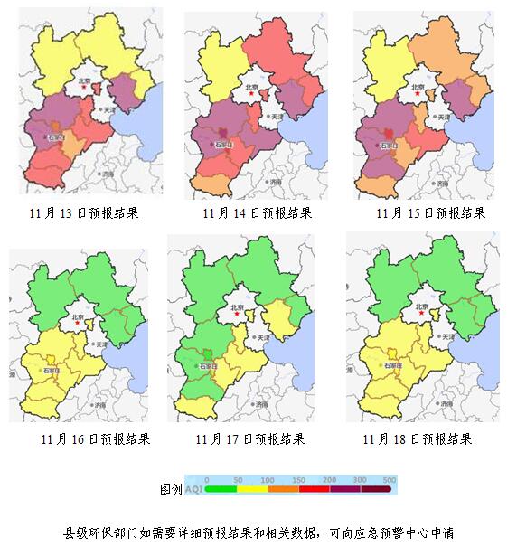 13~15日,近地面以弱南风为主,且湿度较大,扩散条件转差,污染物逐步积累,我省北部以良至轻度污染为主,中南部以中至重度污染为主,个别城市可能出现短时严重污染;其中15日受冷空气影响,污染带整体向南缓慢移动,北部有所改善,南部受污染传输影响可能达到重度污染,首要污染物主要为PM2.5。
