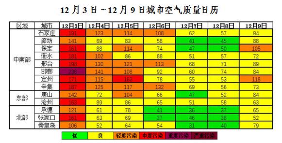 本周全省空气质量预报(2018年12月10日~12月16日) 来源:省生态环境应急与重污染天气预警中心 时间:2018-12-10