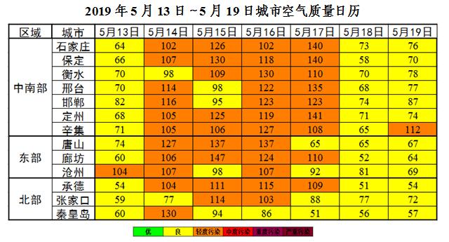 上周(2019年5月13日~5月19日),13日和18-19日,扩散条件较好,我省大部空气质量以良为主,首要污染物为PM10和O3;14~17日,受高温天气影响,扩散条件整体一般,我省大部空气质量以轻度污染为主,首要污染物为O3