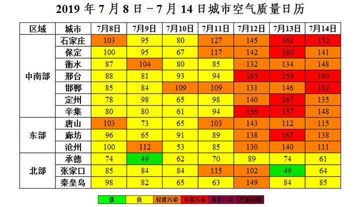 本周全省空气质量预报(2019年7月15日~7月21日)
