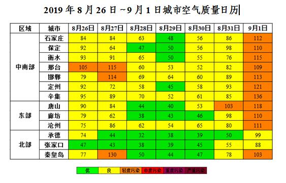 本周全省空气质量预报(2019年9月2日~9月8日)