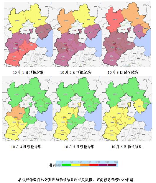 10月1日~3日,每天早晨有区域性逆温,扩散条件不利,污染物有持续积累的风险,由于我省大部持续受偏南风影响,在中部形成辐合带,中部可能出现中至重度污染过程,我省南部以轻至中度污染为主;受强太阳辐射影响,中南部也可能叠加O3轻至中度污染过程。