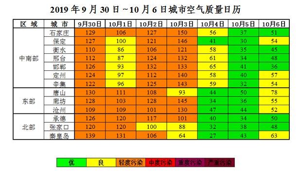 名称 本周全省空气质量预报(2019年10月8日~10月13日)