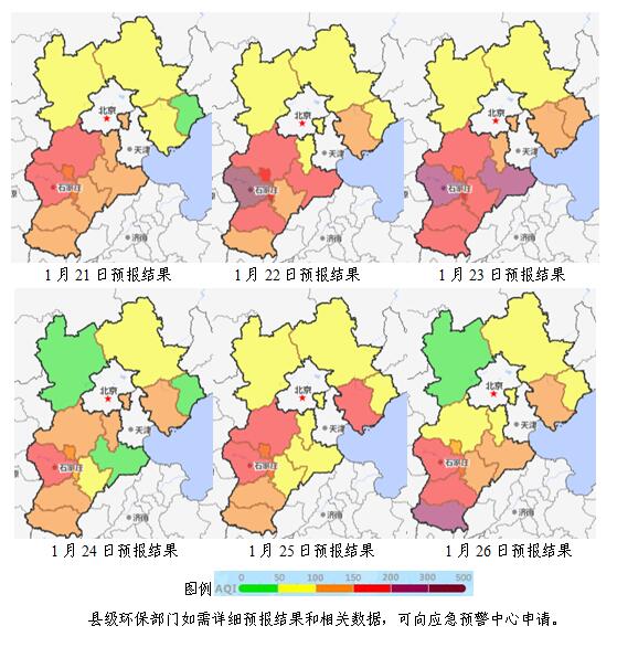 22日~23日白天,受南风影响,地面湿度较高,扩散条件不利,我省北部地区空气质量以良至轻度污染为主,中南部地区空气质量以中度污染为主,个别城市可能出现重度污染,首要污染物为PM2.5。
