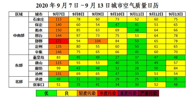 名称 本周全省空气质量预报(2020年9月14日~2020年9月20日)