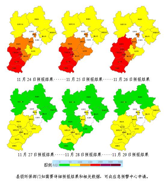 24~26日,北部和东部受冷空气影响,扩散条件较好,空气质量以优良为主。中南部湿度升高,扩散条件一般,污染物缓慢累积,空气质量以轻至中度污染为主,其中早晚湿度较高石家庄、邢台、邯郸可能出现短时重度污染,首要污染物为PM2.5和NO2。