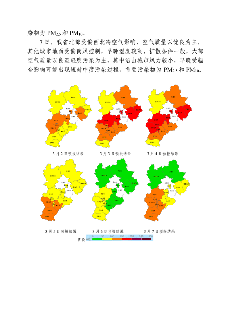 本周全省空气质量预报(2021年3月1日~2021年3月7日)