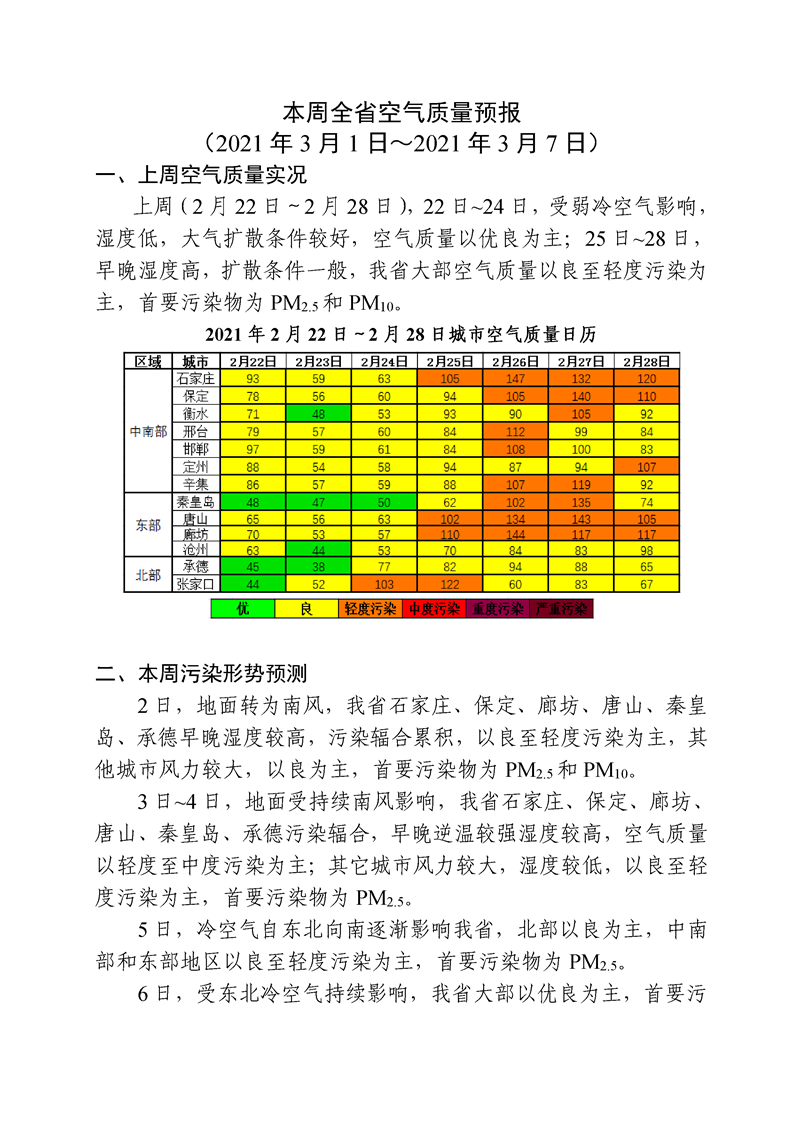 本周全省空气质量预报(2021年2月22日~2021年3月1日)