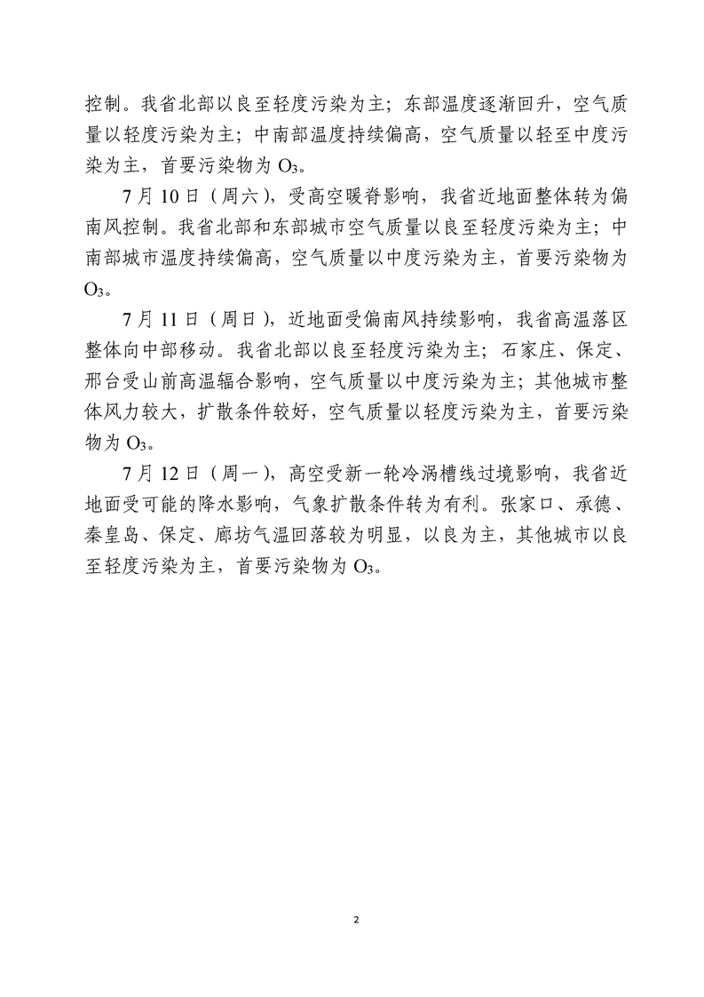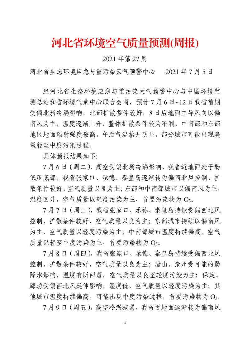 河北省环境空气质量预测(周报)2021年第27周